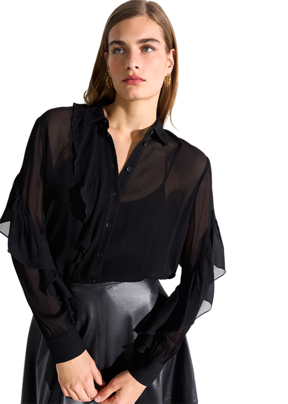 Diese RIANI Bluse mit Volants verleiht jedem Look eine romantische Leichtigkeit. Die fließenden Stoffe und liebevollen Details sorgen für eine elegante Silhouette mit modischem Twist. Ob zur klassischen Hose oder zum Rock gestylt – dieses Premium-Piece ist perfekt für RIANISTAs, die feminine Akzente setzen und dabei Stilgefühl beweisen möchten. Die hochwertige Bluse zieht sich nach dem Waschen etwas zusammen – bitte im feuchten Zustand vorsichtig in Form ziehen