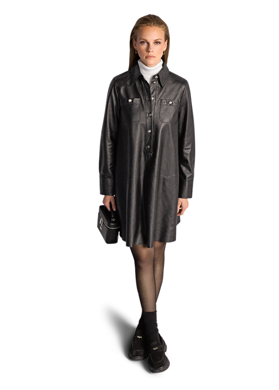 Das RIANI Lederkleid ist ein echtes Statement-Piece für einen ausdrucksstarken Auftritt. Gefertigt aus hochwertigem, softem Leder, verbindet es markante Coolness mit eleganter Silhouette. Der präzise Schnitt sorgt für eine perfekte Passform, während das edle Material jedem Look Tiefe und Charakter verleiht. Ideal für RIANISTAs, die Mode mit Haltung tragen und ihre feminine Stärke betonen wollen.