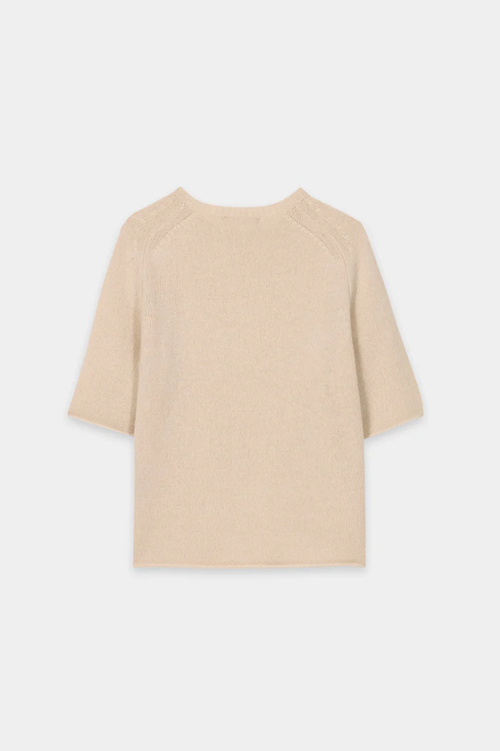 Kastig geschnittener Strickpullover aus besonders softer Kaschmir-Mischung mit Rundhalsausschnitt und kurzen Ärmeln. Minderungsdetails und der Rollsaum an den Abschlüssen ergänzen das Design.
