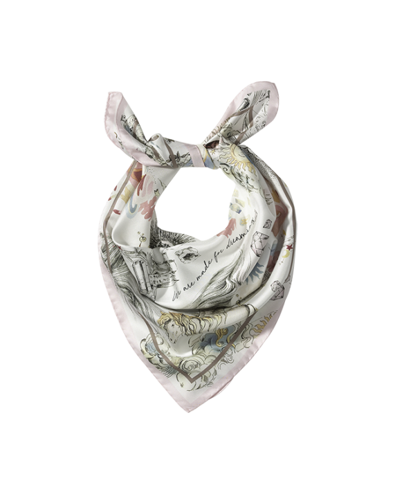 Magischer Blickfang – Das Seidentuch von RIANI mit dem einzigartigen Dreamscape Print entführt in eine fantasievolle Welt. Inspiriert von „Conversationals“, die Geschichten erzählen, vereint es märchenhafte Motive wie Einhorn, Katze am Fenster, Mond und Edelsteine zu einem kunstvollen Design. Das edle Material schmiegt sich weich an und setzt jedem Outfit einen besonderen Akzent. Ein Accessoire für Träumerinnen und Stilbewusste.